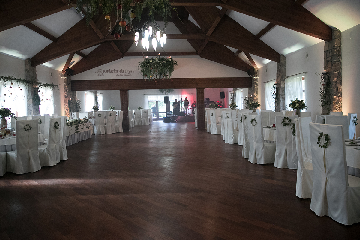 Zapewniamy pełną dekorację sali (mi. wejście, stoły, okna).