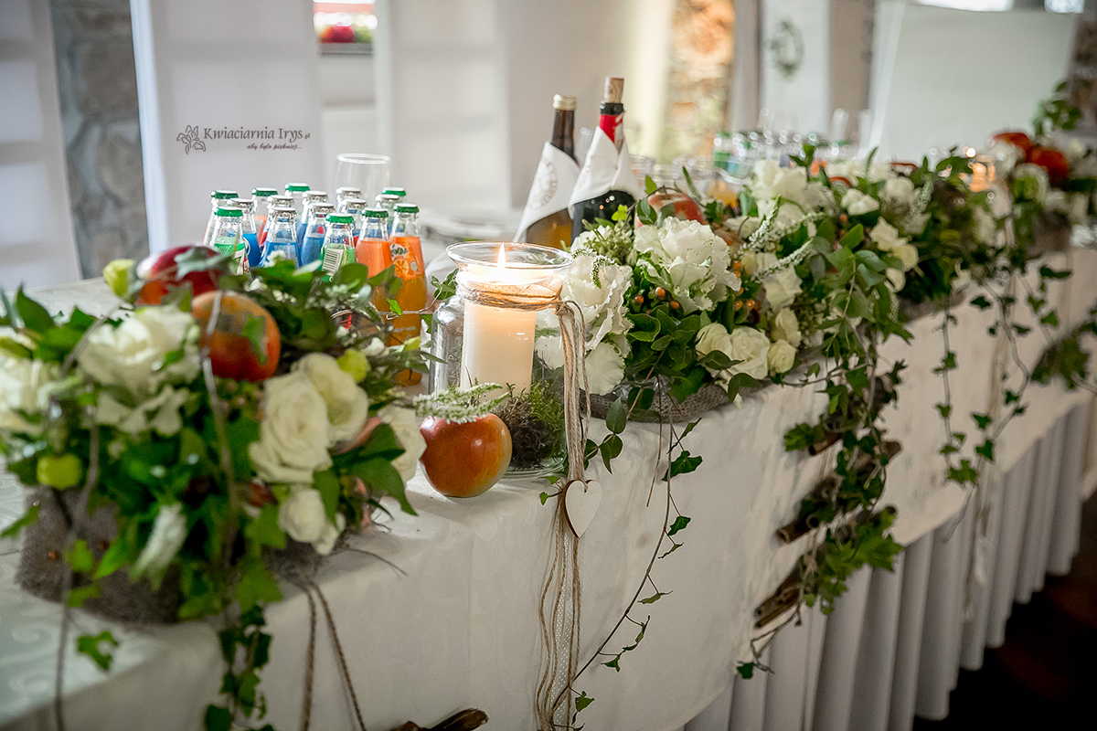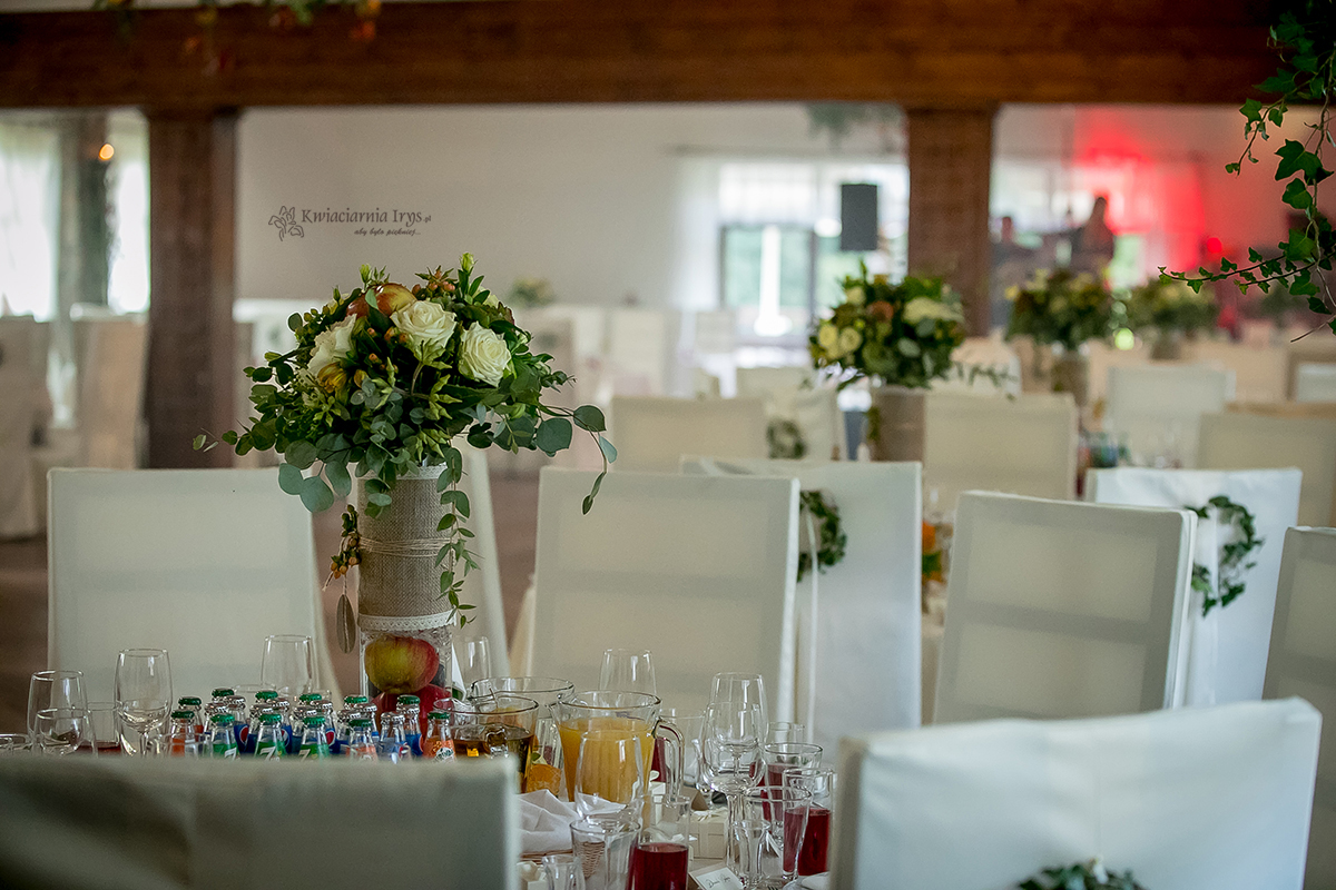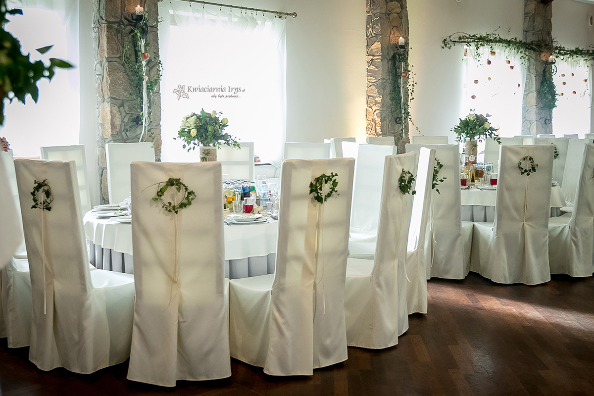 Zapewniamy pełną dekorację sali (mi. wejście, stoły, okna).